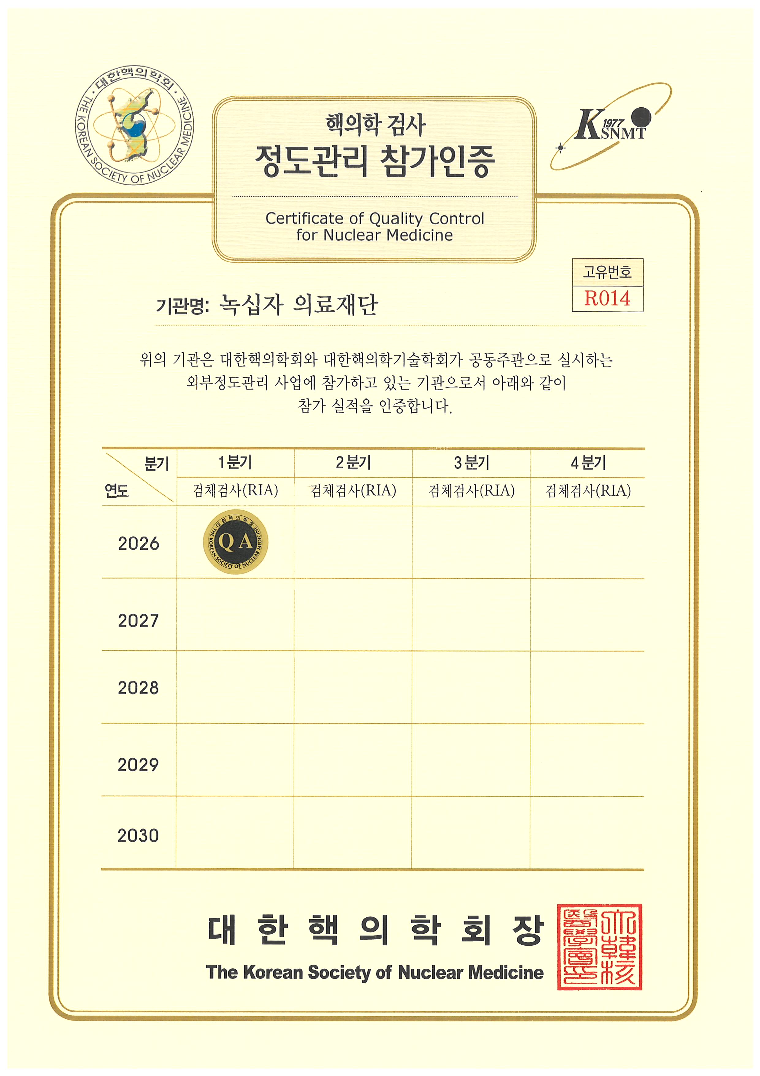 • Quality control Participation Certification by The Korean Society of Nuclear medicine