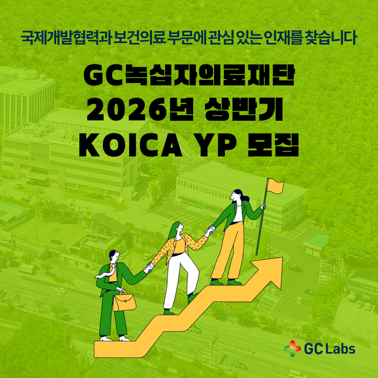 2026년 상반기, GC녹십자의료재단과 함께 국제개발협력 및 보건의료 부문에서 성장해 나갈 YP 2인을 아래와 같이 모집하오니, 뜻있는 청년 여러분의 많은 관심과 참여를 기다립니다.