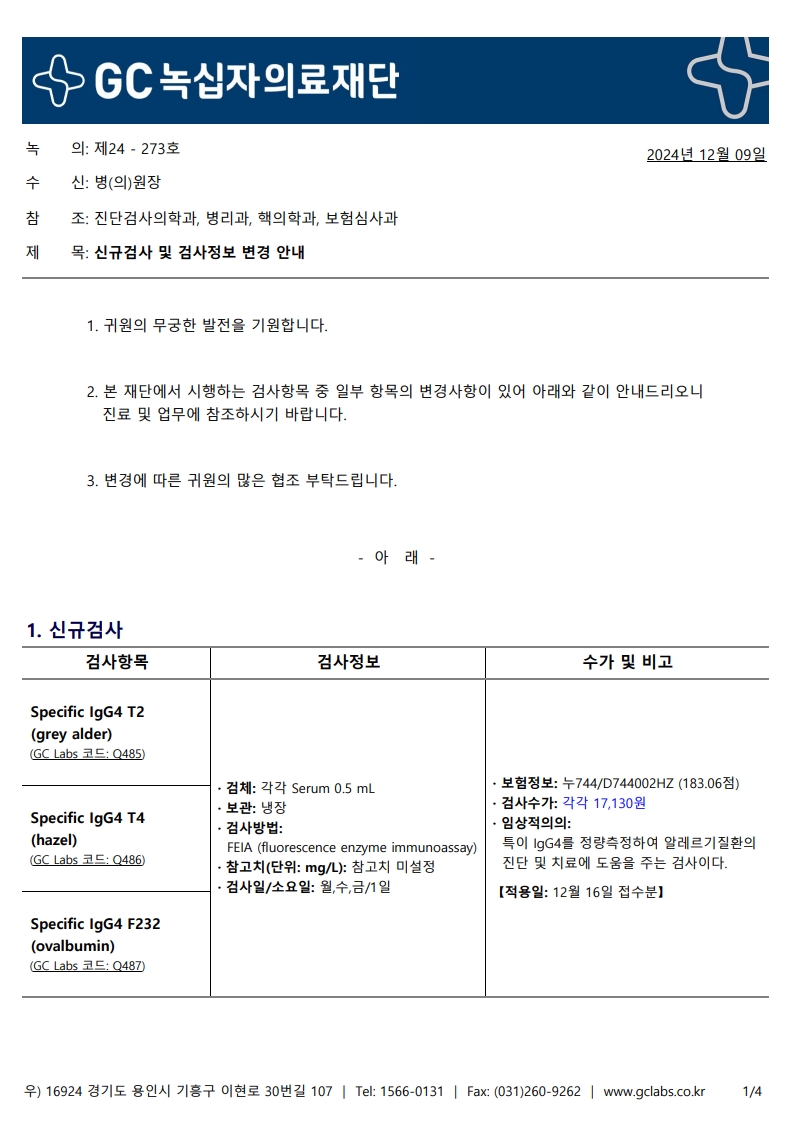 녹의 제24-273호(신규검사 및 검사정보 변경 안내)