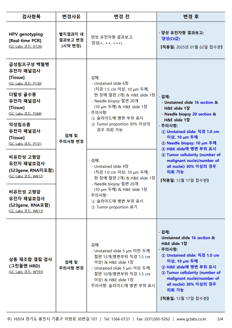 HPV genotyping [Real-time PCR], 급성림프구성 백혈병유전자 패널검사 [Tissue], 다발성 골수종 유전자 패널검사 [Tissue],