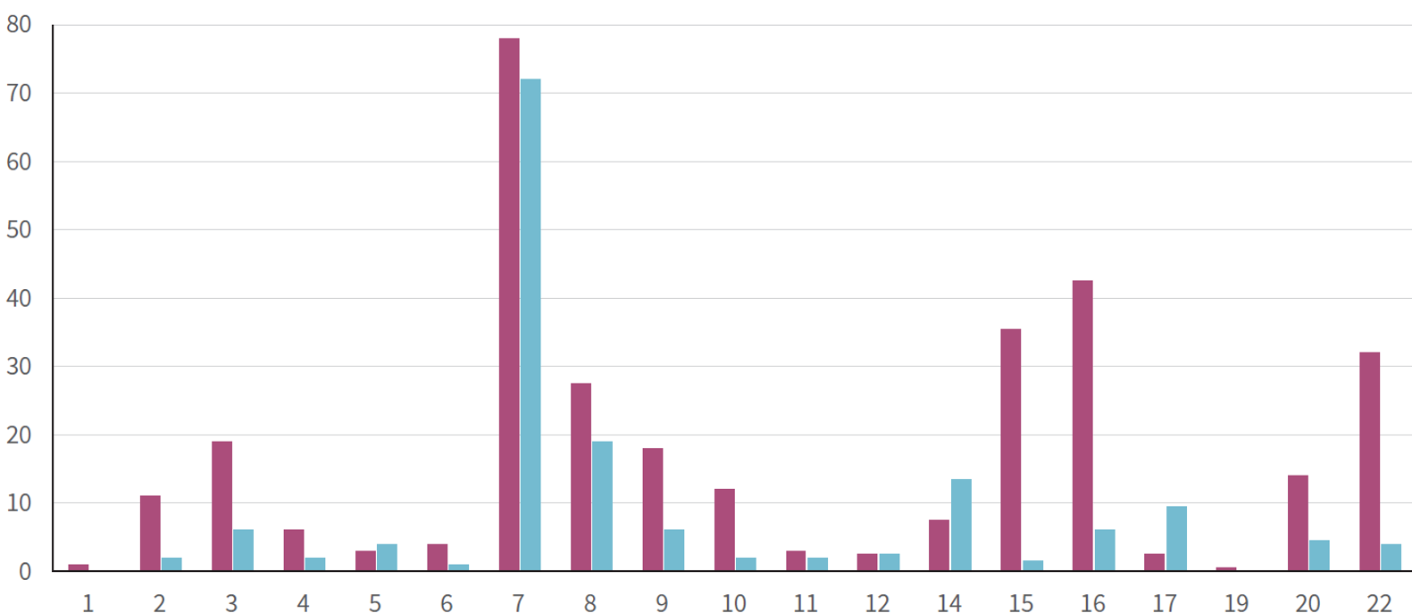 Non-mosaic rare autosomal trisomies (complete RAT) are mostly lethal, making fetal survival difficult and resulting in spontaneous miscarriage in most cases; when pregnancy continues, the condition is usually mosaic, and in the majority of cases represents confined placental mosaicism, with the fetus having a normal karyotype. Most RAT detected by NIPT involve chromosomes 2, 3, 7, 8, 9, 14, 15, 16, 20, and 22, with trisomy 7 being the most frequently detected (Fig. 2).