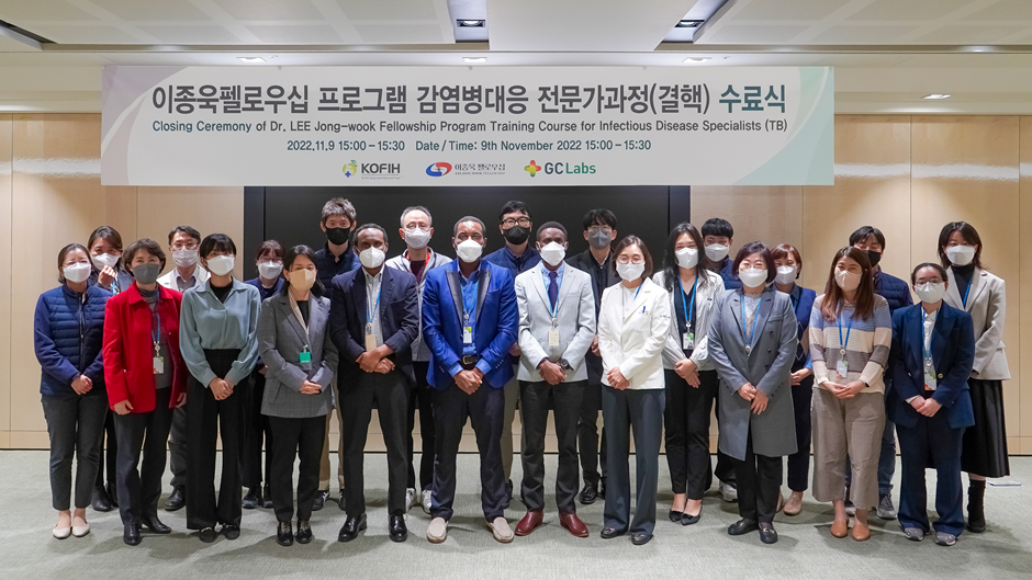 (2022.11.10) GC녹십자의료재단(이사장 이은희)이 지난 9일 한국국제보건의료재단(이사장 김창엽, 이하 KOFIH) ‘2022년도 이종욱펠로우십 프로그램 감염병 대응 전문가과정(결핵)’ 수료식을 개최했다고 10일 밝혔다.